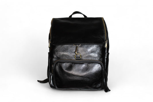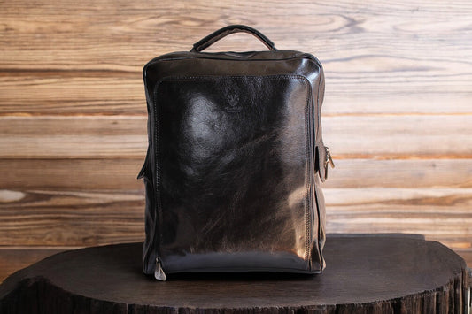 VENTO - Plecak skórzany czarny na komputer made in italy