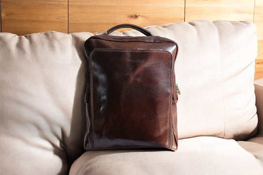 VENTO - Plecak skórzany ciemny brąz na komputer made in italy