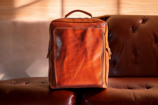 VENTO - Plecak skórzany brązowy na komputer made in italy